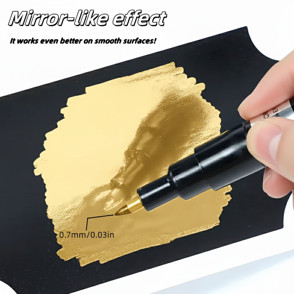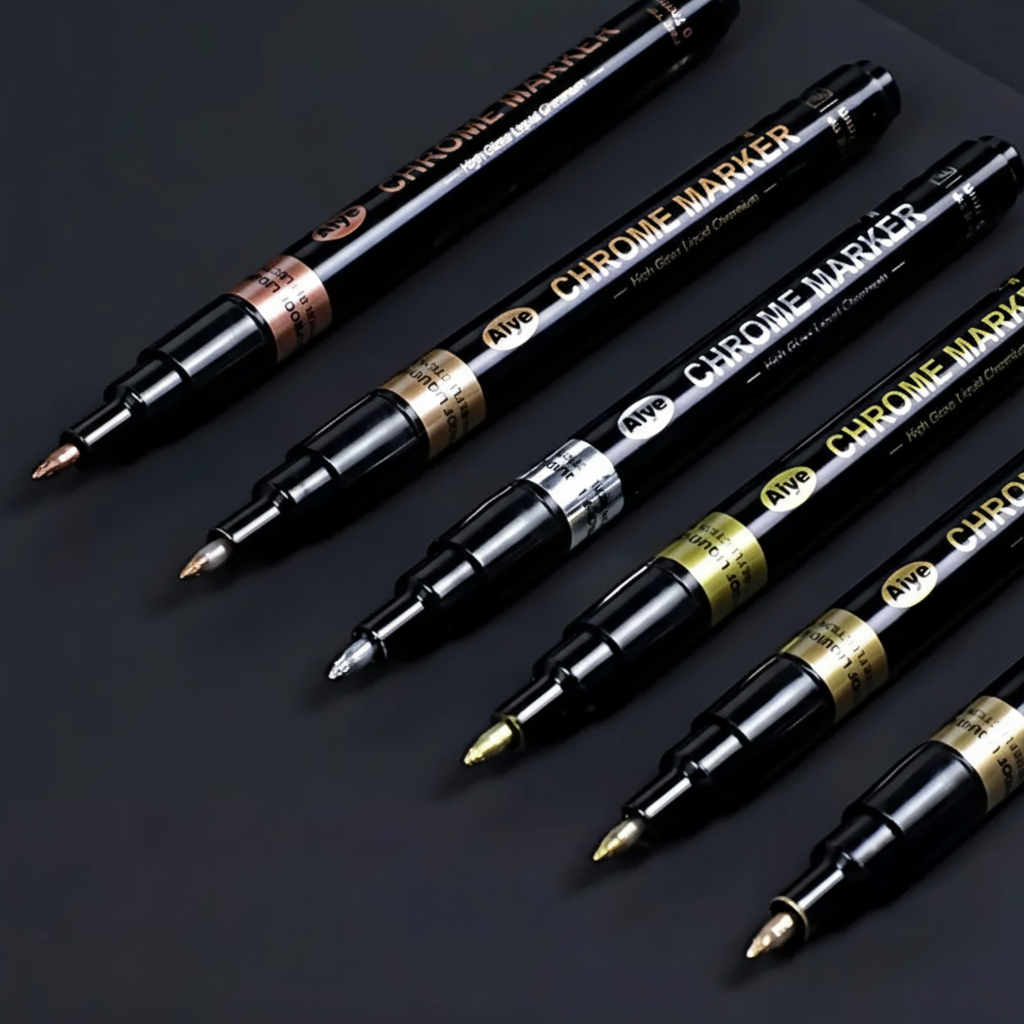 Color Chrome Marker Pens – Oil-Based Paint Ink with Golden/Silvery/Copper Colors, Scratch Cover, Waterproof & Dustproof for Pottery, Glass, Furniture & Models – Art Supplies for DIY, Home & Professional Use, Model Making Tools, Sleek Pen Design, Oilbased Ink.